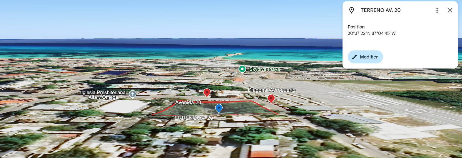 Playa del Carmen Location.This lot is perfectly located dowtown Playa del Carmen, on the 20th avenue and Diagonal Aeropuerto (colonia Centro).• 3 blocks from the sea• 2 blocks from the fifth avenue• Corner location and unbeatable Caracteristics.• 1 671.00 m2 of vacant land• Measurements : 42,68 m x 35,92 m x 36,83 m x 50,02 m• Excavated with 3 meters deep for underground parking Pricing 1 200$ x m2 TOTAL : 2 005 200 $US